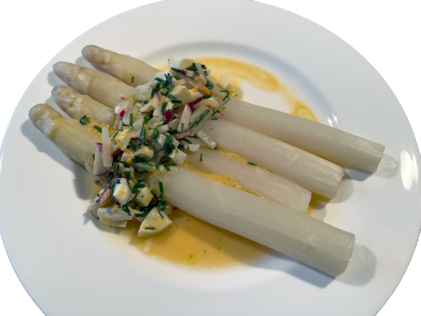 Sentez le printemps avec cette recette d'asperges blanches accompagnées d'une vinaigrette aux œufs durs et radis. Fraîches et croquantes, les asperges se marient parfaitement avec la richesse des œufs et la vivacité des radis pour une entrée savoureuse et colorée.