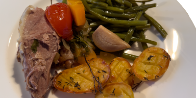 Découvrez ce gigot d'agneau confit à basse température, mijoté avec des légumes aromatiques et du p…