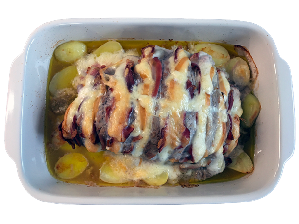Découvrez une délicieuse recette de rôti de porc à la scarmoza et au lard. Savoureux et tendre, ce plat allie les saveurs riches du porc, du fromage et du lard, pour un repas réconfortant et plein de caractère.
